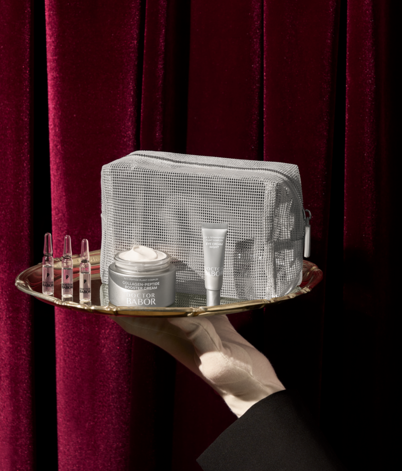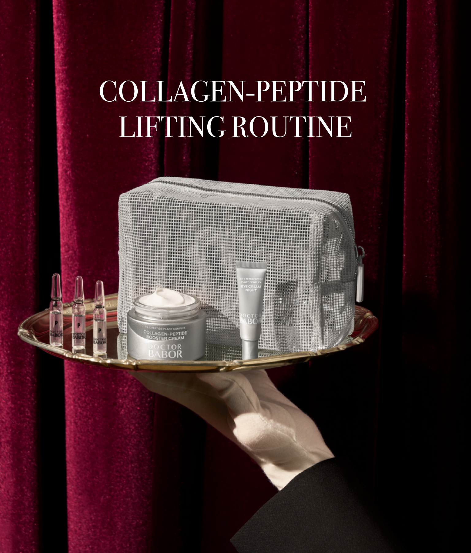 Co v setu najdu? Uvnitř najdete liftingový krém s peptidy, sérum v ampulích a noční oční krém. Trojice pro viditelné zpěvnění pleti.